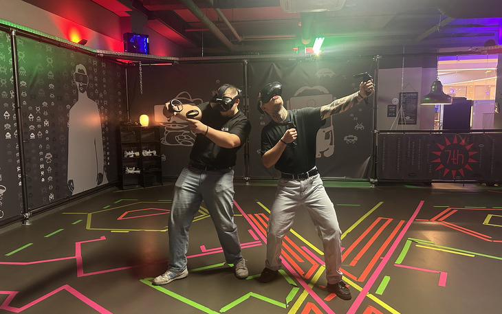 Herzlich Willkommen im 7th Space – Virtual-Reality- Erlebniswelt und Eventcenter für Firmenveranstaltungen, Geburtstage, JGAs, Teambuilding und vieles mehr! Unsere stylishen, in einem coolen Mix aus Clubatmosphäre und Industrial-Look gehaltenen Anlagen warten mit einem einzigartigen Portfolio an unterschiedlichsten VR-Experiences auf - Zielgruppe? Jeder! Denn das Schöne an der virtuellen Realität ist eben ihre Grenzenlosigkeit! Sie kann alles darstellen, was der menschliche Geist sich vorstellen kann! Aus der ganz irdischen Location wird auf Knopfdruck ein futuristisches Weltraumszenario mit packender Shooter-Action, aus unseren coolen Lounges ein Logenplatz für eine virtuelle Reise zu den Metropolen dieser Welt. Oder darf es ein Ausflug in das Innere des menschlichen Körpers sein? Diese Aufzählung könnte ewig weitergehen. Einfach im 7th Space vorbeischauen und in virtuelle Welten eintauchen.
