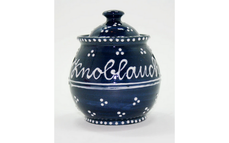 Um Knoblauch länger frisch zu halten, gilt genau das Gleiche wie für Zwiebeln und Kartoffeln. In unserem Knoblauchtopf reifen die Knollen weniger schnell und bleiben somit deutlich länger frisch. Sein rustikales Äußeres passt wunderbar zur praktischen Handhabung, die Löcher sorgen für eine gleichbleibende Belüftung. Einzeln oder gebündelt, hält sich die Knolle mit dem markanten Aroma auch im Kühlschrank, allerdings besteht hier die Gefahr, dass sie andere Lebensmittel mit ihrem Duft ansteckt.
