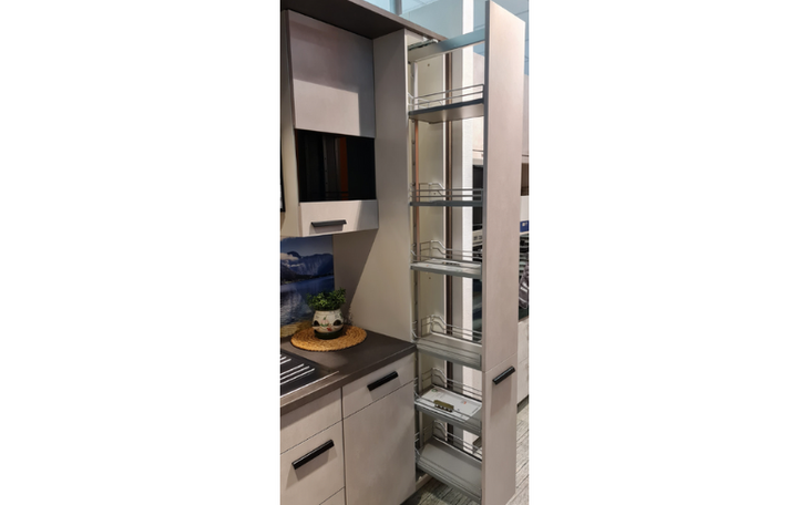 Die Küchenzeile „Riva“ von der Fa. Nobilia mit Fronten in „Beton Sand Nachbildung“ steht bei uns im Geschäft als Ware im Abverkauf. Die ausgewählte Farbe der Fronten macht die Küche pflegeleicht: das Material ist leicht zu reinigen.