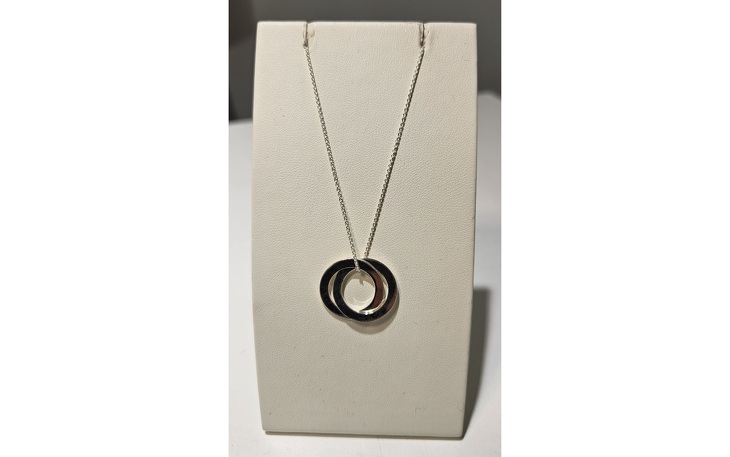 Das Collier in Silber verfügt über zwei gravierbare Ringe. Eine persönliche Schmuckidee mit individueller Gestaltungsmöglichkeit.