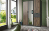 Der Kleiderschrank bietet mit seinen vier Türen viel Stauraum für Kleidung und Accessoires. Zwei integrierte Spiegel sorgen für zusätzliche Funktionalität und lassen den Raum optisch größer wirken. Die zwei Schubkästen bieten praktischen Platz für kleinere Gegenstände und ergänzen die durchdachte Aufteilung des Schranks.