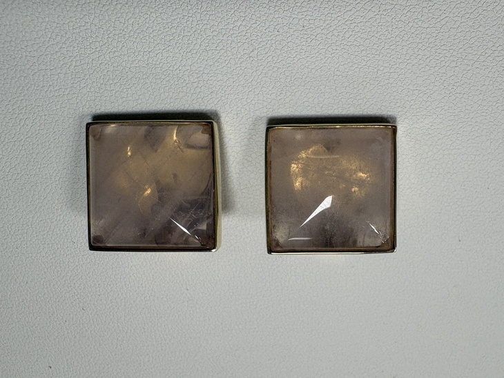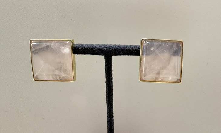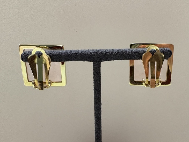 quadratische Ohrclips mit Rosenquarz in 585/- Gelbgold