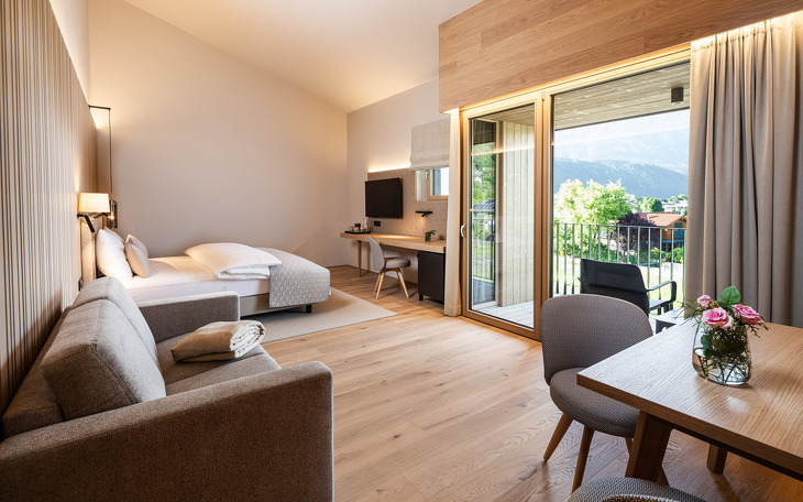 Zurück im Schloss erwartet Sie eine Atmosphäre, die man nicht inszenieren kann: historische Stuben in geschichtsträchtigen Mauern und eine authentische, herzliche Gastfreundschaft, die in jedem Detail spürbar ist. Gleich daneben ergänzt das stilvolle neue Boutiquehotel das Erlebnis mit natürlichen Materialien, lichtdurchfluteten Räumen und modernem Komfort. Zwei Welten, die sich harmonisch verbinden – für einen Aufenthalt, der gleichermaßen entschleunigt und inspiriert.