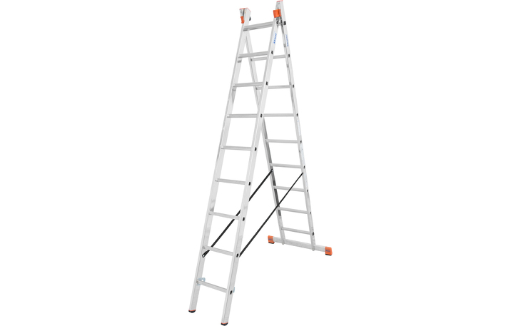 pulverbeschichtete Stahl-Führungsprofile für eine leichte Bedienung, langlebige, 32-fach verbördelte Sprossen-/Holmverbindung, breite Quertraverse für einen sicheren Stand, rutschhemmende Fußstopfen (SafetyCap), witterungsbeständige und reißfeste Gurtbänder als Spreizsicherung, selbstsichernde Sperrhebel für einen sicheren Transport (AutoSnap-System)