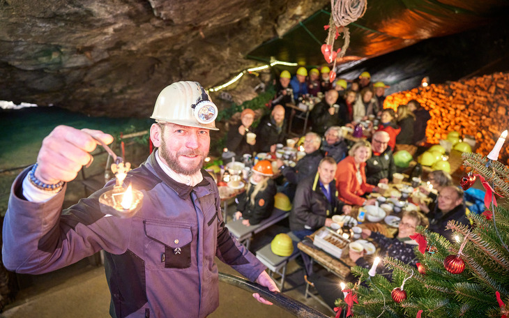 In der Adventszeit lädt das Besucherbergwerk Marie Louise Stolln in der Sächsischen Schweiz täglich zu weihnachtlichen Mettenschichten ein und erinnert damit an die alte bergmännische Tradition der letzten Schicht vor Weihnachten. Erleben Sie eine außergewöhnliche Weihnachtsveranstaltung im Kerzenschein am unterirdischem See.