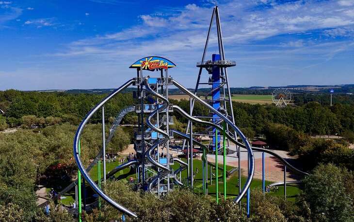 Neben riesigen Hüpfbergen, großen Kletter- und Schlauchrutschparadies, Flößen, Quads, Tretautos oder Minidampfern sorgen der Wellenflieger, Nautic-Jet, Butterfly und 3 Überschlagschaukeln wie der Komet für richtige Action. Genau wie der höchste Rutschenturm Deutschlands, der einmaligen Rutschspaß auf insgesamt 11 Röhren-, Wellen- und Tunnelrutschen garantiert.