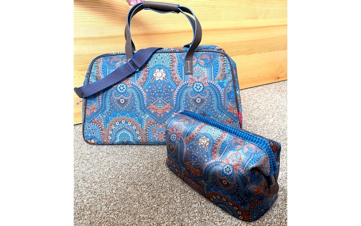 Dieses praktische und wunderschöne Reiseset der Marke Pip besteht aus einer Reisetasche Tovy mittel in Jabali Blau und einer Kosmetiktasche Cooper Extra Groß Jabali Blau