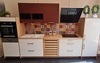 - die Unter- und die Hochschränke mit Fronten in „Magnolia Hochglanz“ sowie die Hängeschränke mit Fronten in „Rostrot Matt“ entspr. der dargestellten Zeilenform