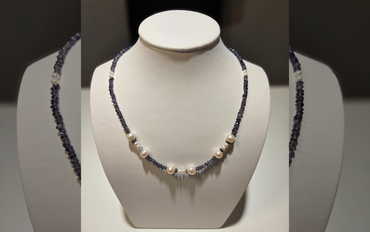 Iolithkette mit Süßwasserperlen im Wert von 169€