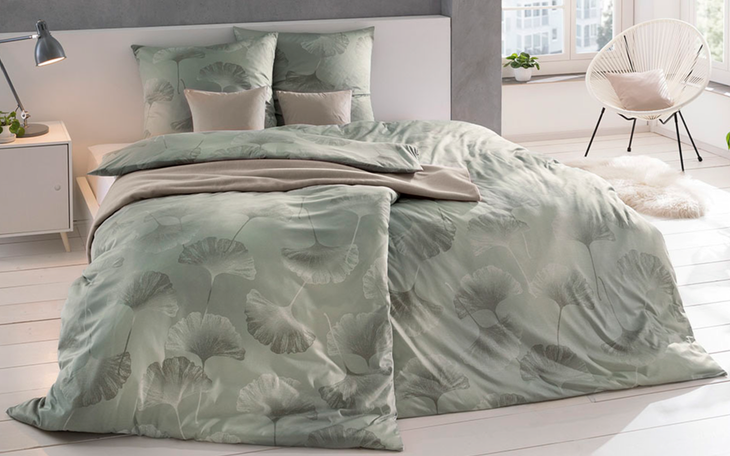 Ein naturverbundenes Muster kombiniert mit metallischer Färbung: Unsere Bettwäsche Isabella zeigt wie stilvoll eine solche Symbiose anmuten kann. Die Garnitur präsentiert sich im wunderschönen Grundfarbton Platin, der mit seiner metallischen Optik für einen zeitgemäßen Touch sorgt. Gekrönt wird das Design durch ein ganzflächig angelegtes Naturmuster, das die Blätter des Ginkgobaumes eindrucksvoll glänzen lässt.