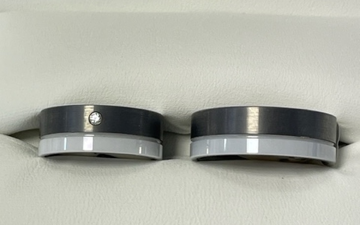 Partnerring Tungsten - weiß Ceramik mit Zirkonia
