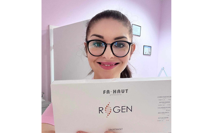 Die RE-GEN-Behandlung ist eine neue Linie von FR~HAUT COSMETICS, ein neues System für die Arbeit mit Kollagen, das darauf abzielt, das Eindringen von Kollagen in die Epidermis zu erhöhen, die Kollagenstruktur der Haut zu verbessern und den Abbau dieses Proteins zu verhindern. Bei der Behandlung wird das kleinste Kollagenmolekül in Form von Tropokollagen verwendet, das in der Lage ist, die epidermale Barriere tief in die Haut zu durchdringen und die Kollagen- und Elastinproduktion zu stimulieren. Die Behandlung basiert auf löslichen Kollagenfäden, die genau in die Falten gelegt werden, und einer löslichen Kollagenmaske. Es handelt sich um ein nicht-invasives Verfahren und eine Alternative zu Behandlungen der ästhetischen Medizin. Die Wirkung ist bereits nach der ersten Behandlung sichtbar. Die Haut wird straffer und glatter.