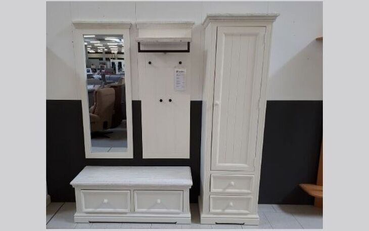 Kiefer Weiß Garderobenkombi: Spiegel, Paneel, Bank & Schrank