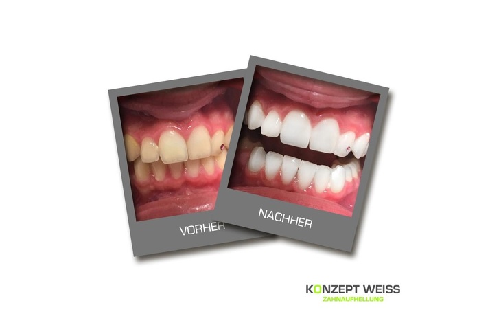 Wir von KONZEPT WEISS® sind von unserer einzigartigen Methode für Zahnaufhellung so überzeugt, dass wir Dir auf unsere PREMIUM und DIAMOND Pakete sogar eine Ergebnisgarantie anbieten. Das heißt konkret: Sollte kein Unterschied von mind. 2 Farbnuancen sichtbar sein, so geht die Behandlung auf unsere Kosten. Mehr Infos findest du hier.