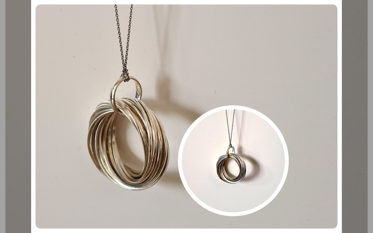 Die geschickte Verbindung der Ringe verleiht dem Anhänger nicht nur eine beeindruckende visuelle Präsenz, sondern auch eine bemerkenswerte Flexibilität und Beweglichkeit, die ihn zu einem faszinierenden Schmuckstück macht.