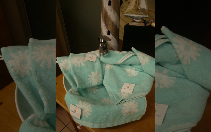 - Bestehend aus 1 Badetuch 70x140 cm, 1 Handtuch 50x100 cm + 2 Waschhandschuhen 15x20 cm
