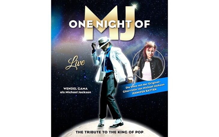 Erleben Sie die unvergesslichen Hits des King of Pop in „One Night Of MJ – The Tribute To The King Of Pop“. Diese spektakuläre Tribute-Show bringt die größten Songs von Michael Jackson auf die Bühne und lässt Sie die Magie der Originalauftritte wieder erleben. Begleitet von der legendären Lead-Gitarristin Jennifer Batten, die fast zehn Jahre lang mit Michael Jackson auf Tour war, und dem herausragenden Performer Wendel Gama, erleben Sie die größte Hommage an den King of Pop.