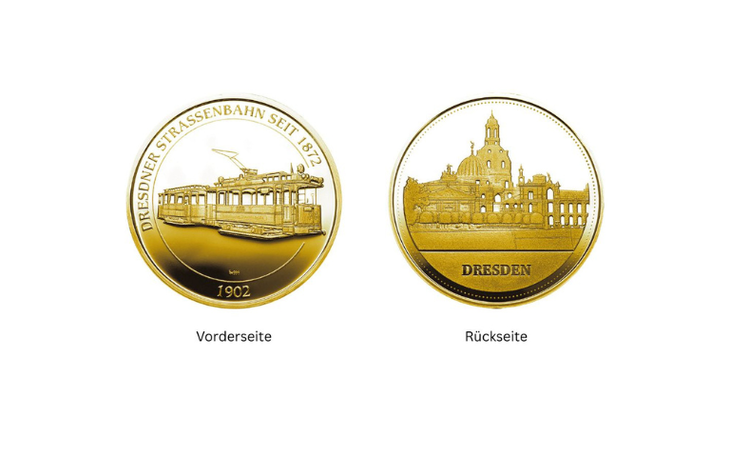 Sonderprägungen in Feingold – DRESDNER STRASSENBAHNEN SEIT 1872