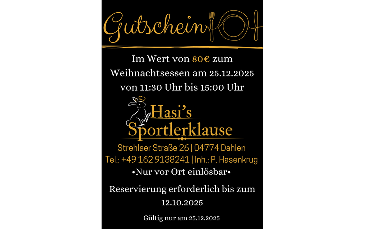 Gutschein für ein Weihnachtsessen