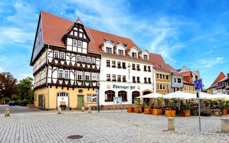Das Hotel-Restaurant Thüringer Hof liegt mitten im idyllischen Stadtzentrum in Bad Frankenhausen. Der Südharz Kyffhäuser ist die optimale Region für einen gemeinsamen Familienurlaub. Während Ihres Aufenthalts verwöhnen wir Sie gern im hauseigenen Restaurant mit frischer und moderner Thüringer Küche. Erholen können Sie sich bei uns in stilvoll und nostalgisch eingerichteten, großzügigen Apartments mit Wohlfühlatmosphäre. Diese befinden sich in direkter Hotelnähe, nur ca. 50 m vom Haupthaus entfernt, in unserem Apartmenthaus „Alter Ackerbürgerhof“.