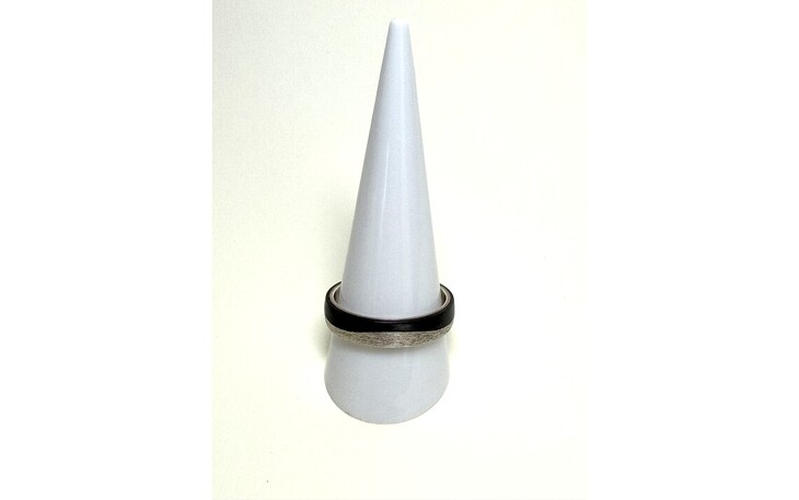 Dieser markante Designring aus Carbon und 925er Silber kombiniert technisches Material mit klassischer Edelmetallkunst.