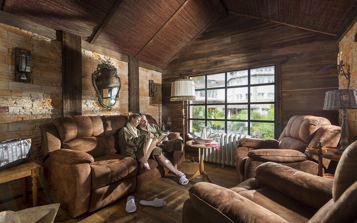 - Großzügige, kuschelige Relax- und Ruhebereiche mit vier holzbefeuerten Kaminen