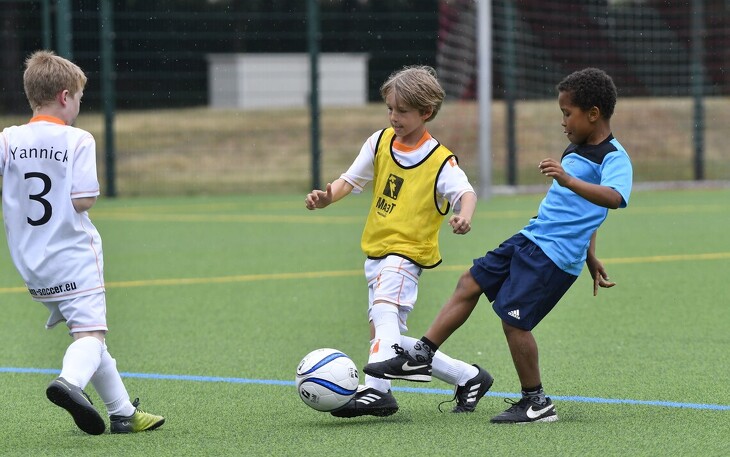 Um die Qualität zu gewährleisten, findet das Training in kleinen Gruppen bis maximal 14 Kinder pro Gruppe und Trainer statt.