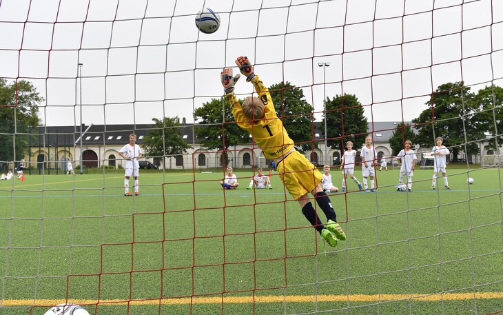 Fußball-Feriencamps für Feldspieler und Torhüter. Um die Qualität zu gewährleisten findet das Training in kleinen Gruppen bis maximal 14 Kinder pro Gruppe und Trainer statt.