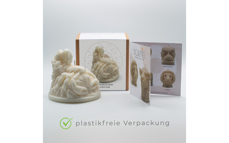 Die Kerze „Sternzeichen Skorpion“ ist eine Skulptur aus Rapswachs und ein besonderes Geschenk für Menschen mit diesem Sternzeichen (23. Oktober - 21. November). Sie wurde in der Sculpties Manufaktur designt und wird von Hand gegossen.