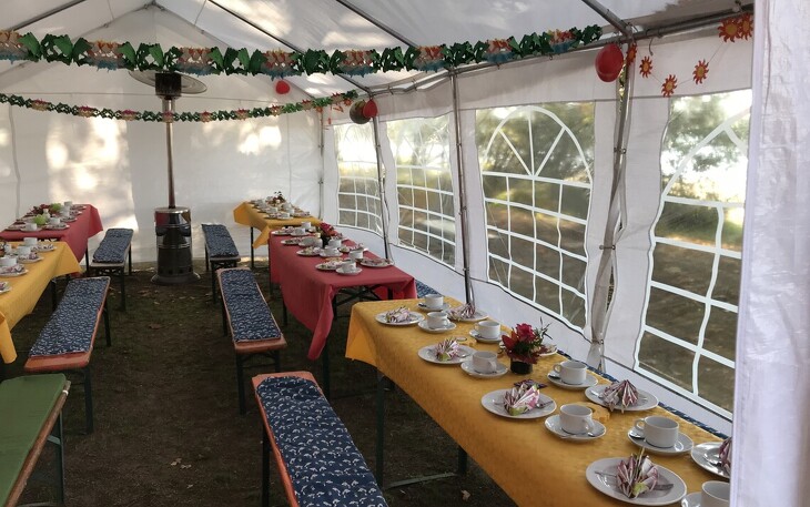 Ersteigern Sie diesen Gutschein für die Miete eines Profi-Zelts mit Bestuhlung für bis zu 40 Personen und Buffettischen direkt am Strand des Mittelteichs in Moritzburg.