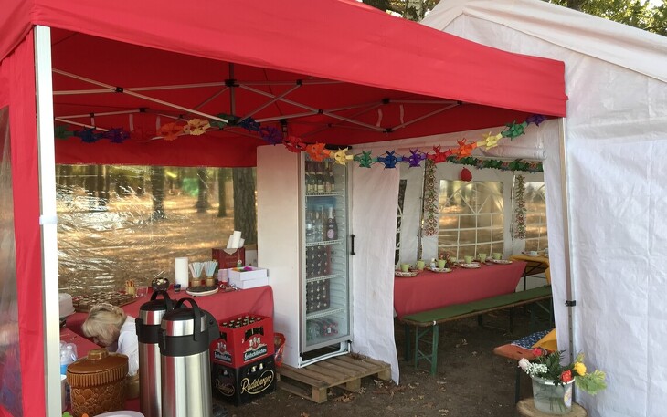 Nehmen Sie Platz in einem Zelt direkt am Mittelteich und genießen Sie das besondere Strand-Ambiente. Das Partyzelt kann für bis zu 40 Personen mit Biertischgarnituren bestuhlt werden. Bei Gesprächen, Essen und Getränken (letzten beiden sind natürlich optional zubuchbar) erleben Sie einen wunderschönen Tag. Eine ganz außergewöhnliche Lokation für Ihre Geburtstagsfeier, Firmenevent oder Vereinsfeier.