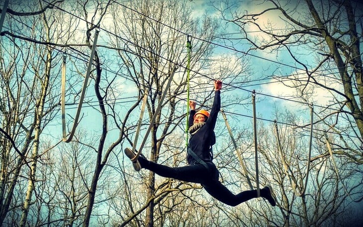 - der größte der Region: Seilbahn-/Ziplineparcours mit 12 Stationen und 400m rasanter Fahrt