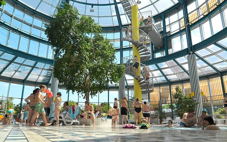 Im 25 m-Becken geht es sportlich zu und auch an den Wochenenden sowie in den Schulferien haben die Familien bei den Riesenwellen ihren Spaß.