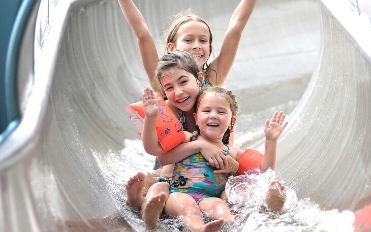 Der Attraktionsbereich und die 85 m Rutsche bieten Familien mit Kindern alle Möglichkeiten zum Spielen und sich ausprobieren.