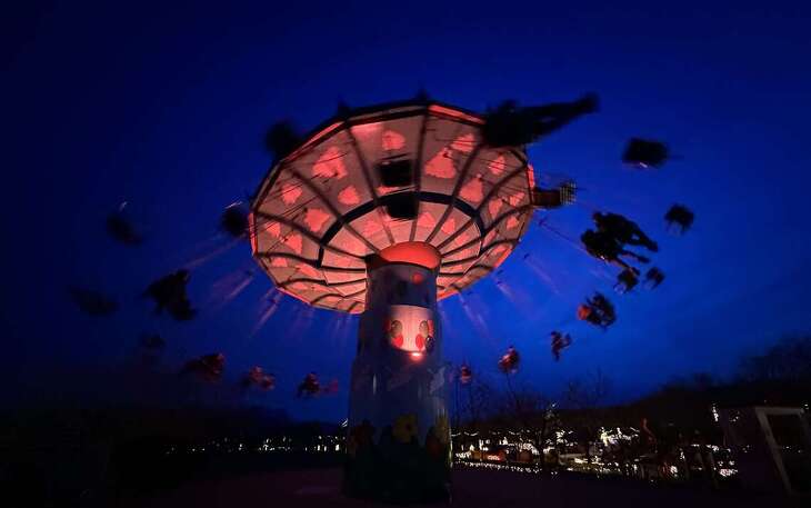 - Winterliche Attraktionen: Kunsteislaufbahn, Reifen-Rutschbahn, leuchtender Wellenflieger, Panoramaschaukel, Komet und Helios