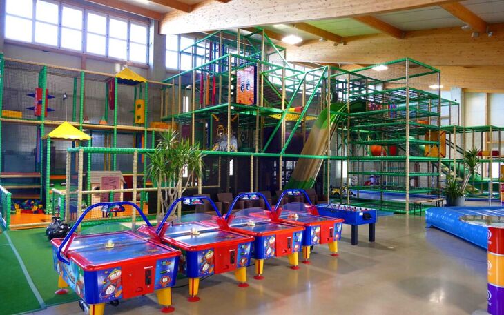 - Indoorspaß bei jedem Wetter: 1.200 m² Tobewelt auf 4 Ebenen, Kletter- und Hüpfburgen, Riesendart, Elektroautos; Kleinkindbereich mit Spielhaus, Minirutsche, Bällebad, Motorikspielen und Bobby-Cars