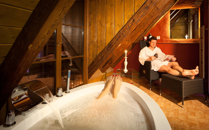 Wir begrüßen Sie mit einem Glas Sekt oder Saft, danach freuen Sie sich auf eine ausgewählte Pflegezeremonie mit einem Bad Ihrer Wahl und Entspannung im Ruheraum oder auf der Terrasse am Teich.