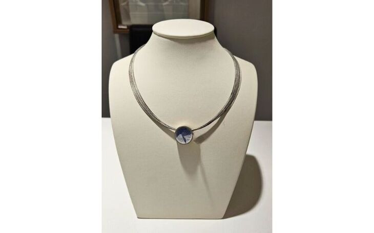 Collier: Edelstahl, Länge 42 cm, Edelstahl-Steckverschluss. Anhänger im Kreuchauff Design.