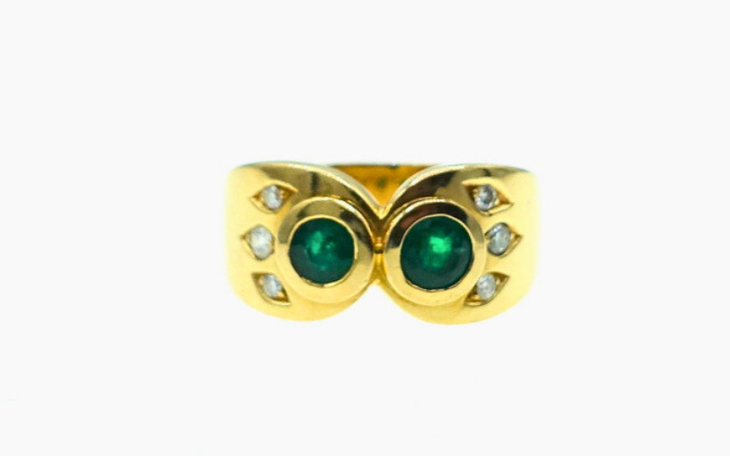 750er Goldring mit Smaragden und Diamanten – Eulenmotiv – Unisex