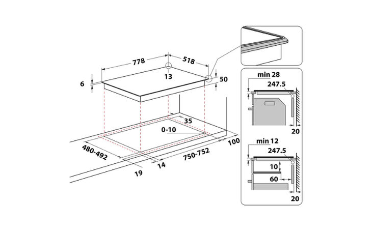- Cerankochfeld mit Induktion 77 cm in Schwarz