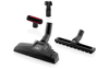 - Zubehör: Universalbodendüse mit ausziehbarer Bürste, Parkettdüse für harte Böden, Teleskoprohr aus Metall, Fugendüse, Polsterdüse und Möbelbürste