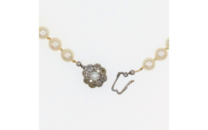 Diese edle Perlenkette besticht durch ihre Naturperlen mit einem sanften Schimmer und einem Durchmesser von ca. 7 mm.