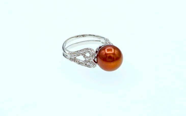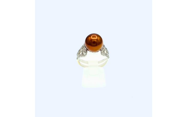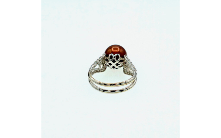 750er Weißgoldring mit Tahiti Perle und Diamanten