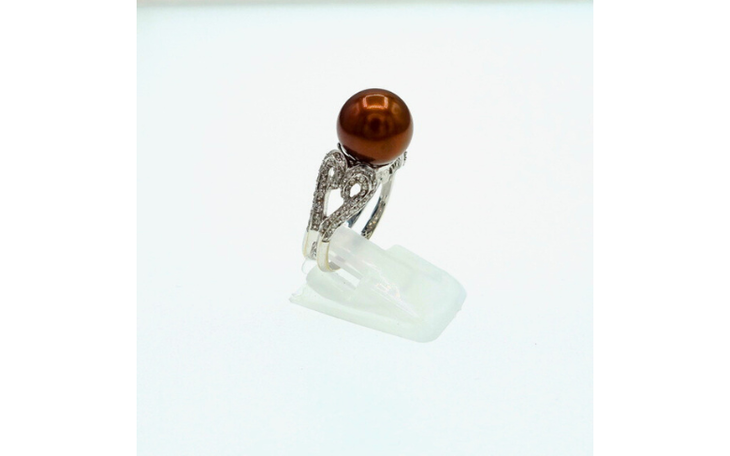 Dieser exklusive Ring aus 750er Weißgold besticht durch eine elegante Kombination aus edlen Materialien und feinstem Design. Im Mittelpunkt des Schmuckstücks steht eine große, braune Tahiti Perle mit einem Durchmesser von ca. 11 mm, die durch ihre intensive Farbe und ihre Schönheit einen luxuriösen und exotischen Touch verleiht.