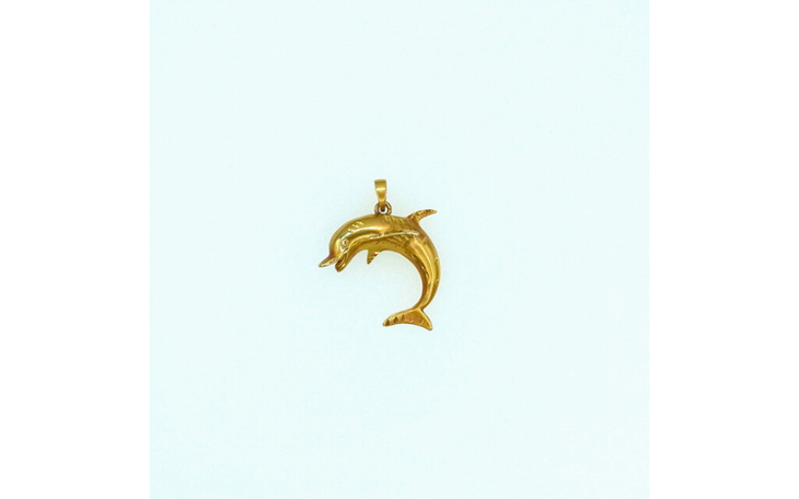 Der große, massive Herren-Anhänger in Form eines Delfins ist aus hochwertigem 585er Gold gefertigt. Der Anhänger besticht durch seine mattierte Oberfläche, die einen modernen und dezenten Look verleiht, während glänzende Akzente bestimmte Details des Delfins betonen und ihm eine dynamische, fast lebendige Wirkung verleihen.