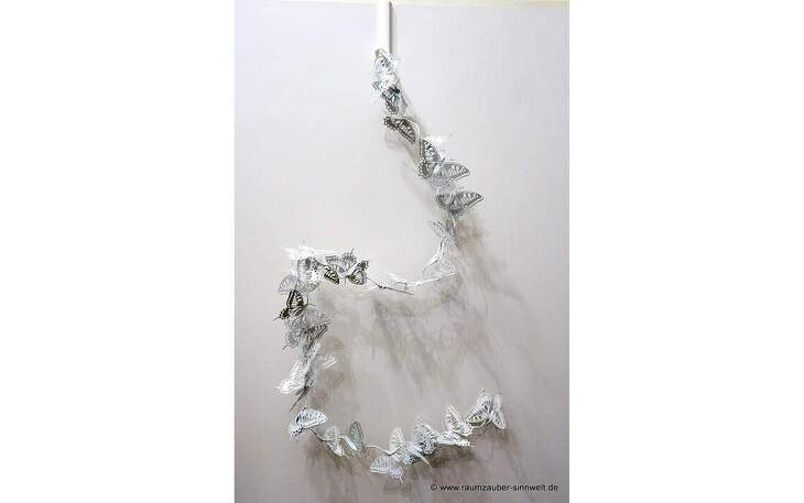 Deko-Girlande aus Blechschmetterlingen, biegsam und variabel einsetzbar.