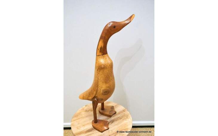 Deko-Figur „Lauf-Ente“ aus verschiedenen Holzmaserungen.