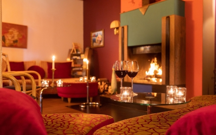 Im Kaminraum kann man die Füße hochlegen, gemütliche Sitzgruppen laden zum Verweilen ein..