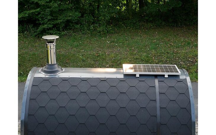 Die Gesamthöhe des mobilen Saunafasses mit Rauchabzug beträgt 330 cm. Bitte beachten Sie die Durchfahrtshöhe! Unser Saunafass hat einen Außendurchmesser von 205 cm und eine Länge von 280 cm. Die Saunaliegen sind 210 cm lang und bieten bis zu 6 Personen Platz. Am komfortabelsten saunieren Sie mit 4 Personen. Die Aufheizphase beträgt je nach Außentemperatur ca. 1,5 Stunden. Mit dem holzbeheizten Saunaofen genießen Sie ein besonderes Saunaerlebnis ganz ohne Stromanschluss. Selbst das Licht wird über ein Solarpanel erzeugt.