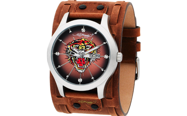Datum, Quarzwerk und Kalbslederarmband in braun